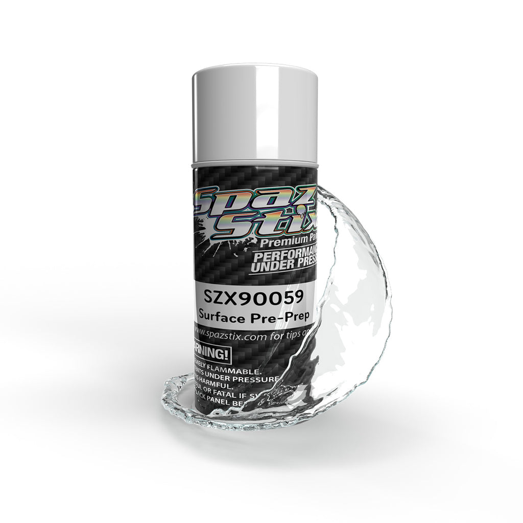 IApplying Spaz Stix Surface Pre-Prep is an especially important step when using Spaz Stix Color Change paints to finish your polycarbonate R/C body. Using it prevents swirls caused by static electricity from the body, and improves adhesion. Apply in one very light coat (barely a mist) before spraying your color.