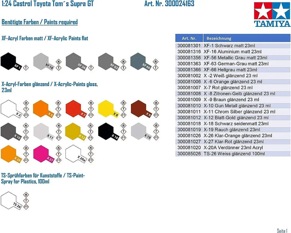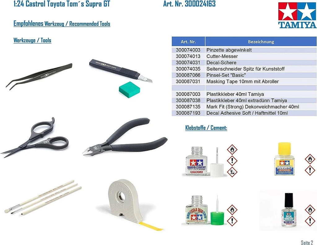 The Tamiya 1/24 Castrol Toyota Toms Supra GT Model Kit, a plastic assembly model of the full size car.